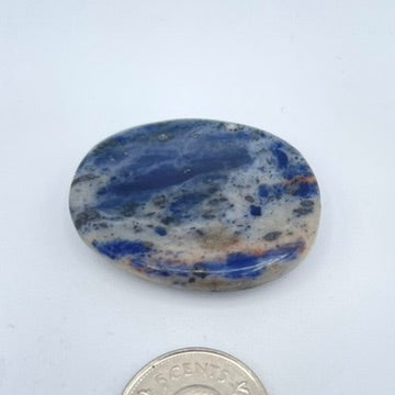 Cut and polished ovaloid stones with a thumb indentation, perfect for tactile stress and worry relief. Approximately 1.5" x 1" in size, making it great for carrying around in pockets or small bags.
