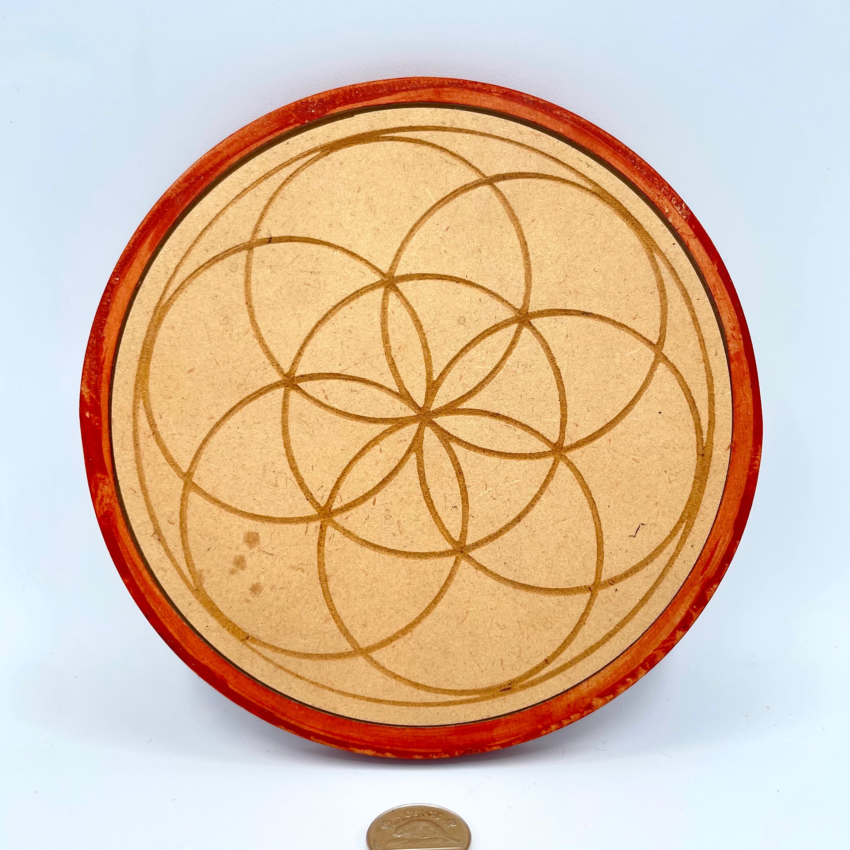 This crystal grid is perfect for any small manifesting work or a great centrepiece to your alter. It features a piece of sacred geometry cut into the wood.